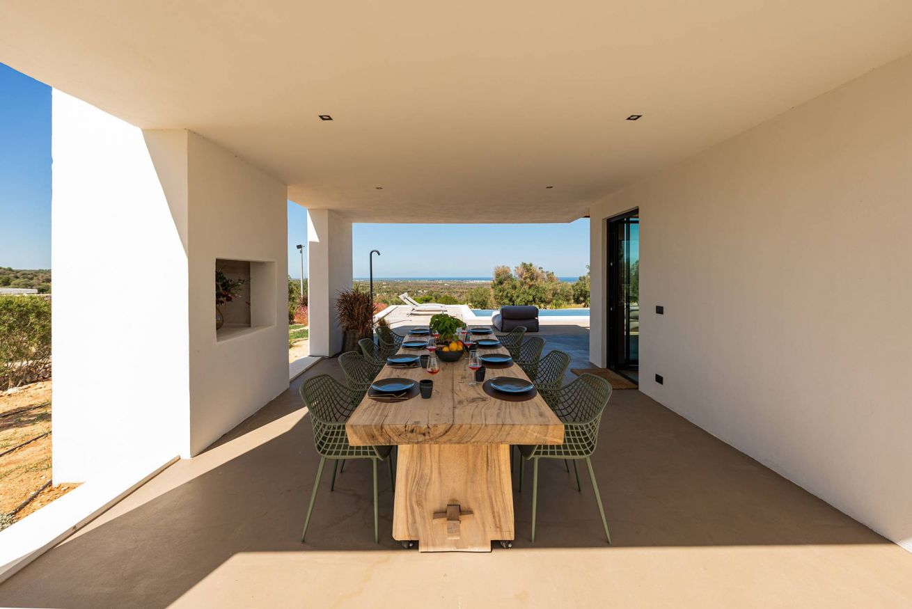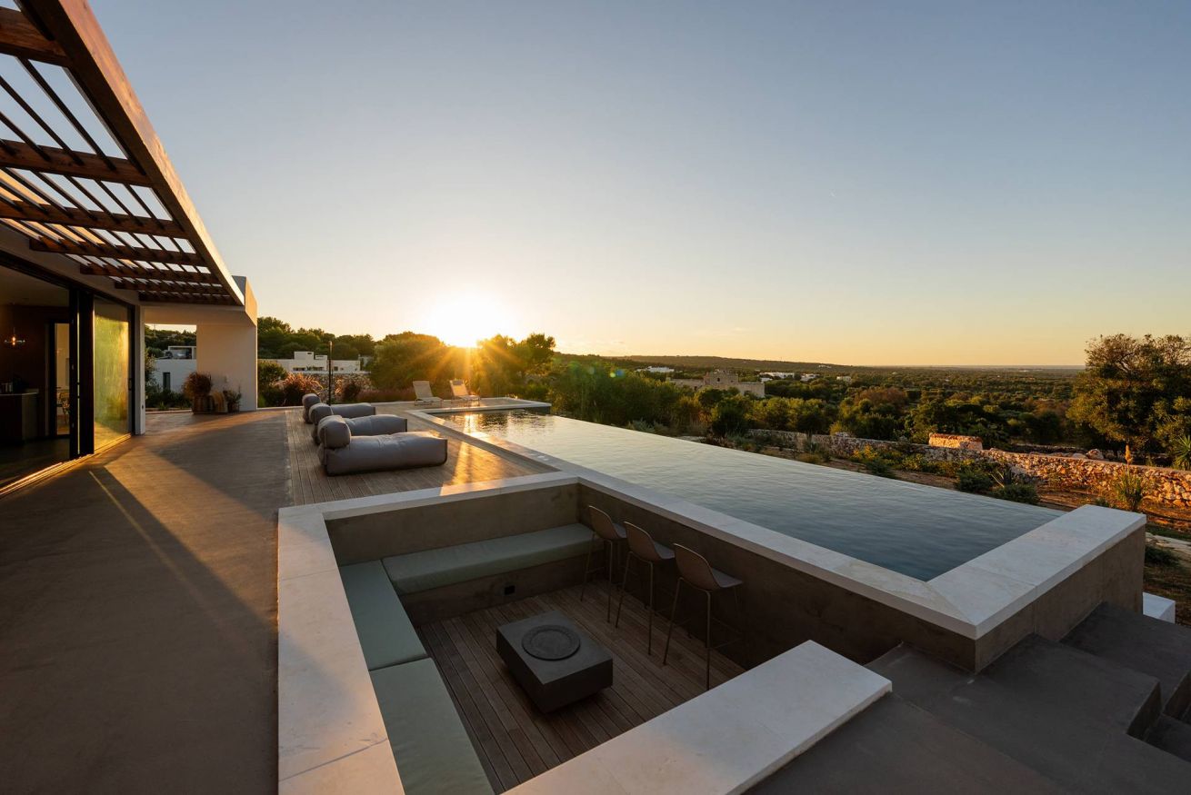 Beyond the glass, Villa Maggio reveals its outdoor soul: a tranquil haven of beauty and calm. The heated infinity pool shimmers under the Apulian sun, overlooking a sweeping sea-view terrace framed by olive trees and Mediterranean gardens. Elegant lounging areas, a shaded alfresco dining space, and a BBQ create the perfect setting for long, sunlit days and unforgettable evenings under the stars. For families, a delightful children’s play area adds a touch of joy and playfulness.