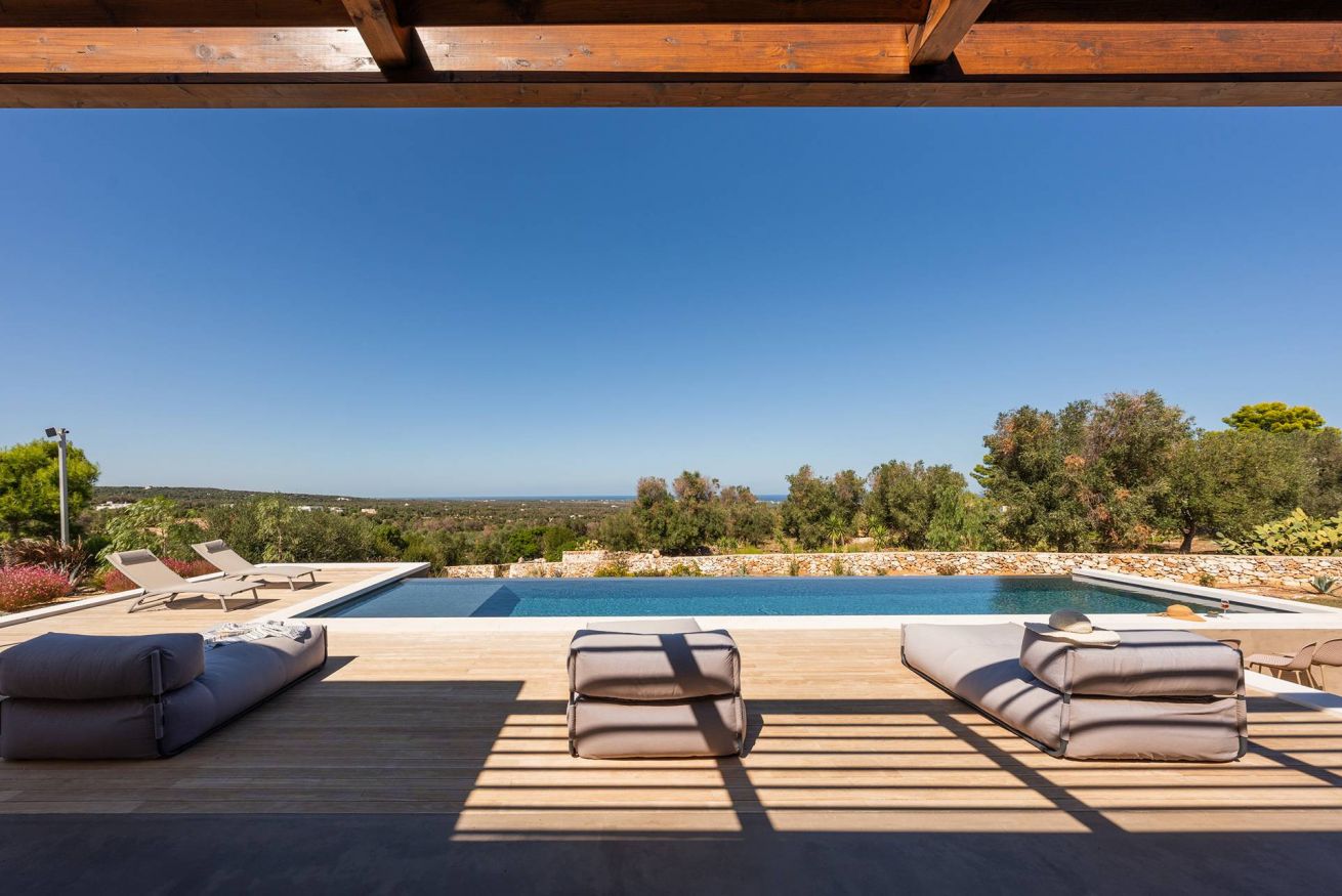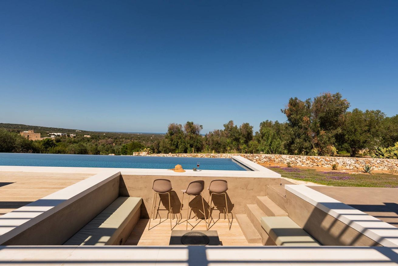 The villa boasts a generous layout with four refined double bedrooms, two with private en-suite bathrooms and two sharing a beautifully appointed family bathroom. Surrounded by a landscaped garden, the property offers beauty and privacy in equal measure. The heated infinity pool takes centre stage, creating a serene atmosphere with panoramic sea views. The outdoor spaces invite you to unwind — swim, sunbathe, or enjoy alfresco meals under the clear Apulian sky.